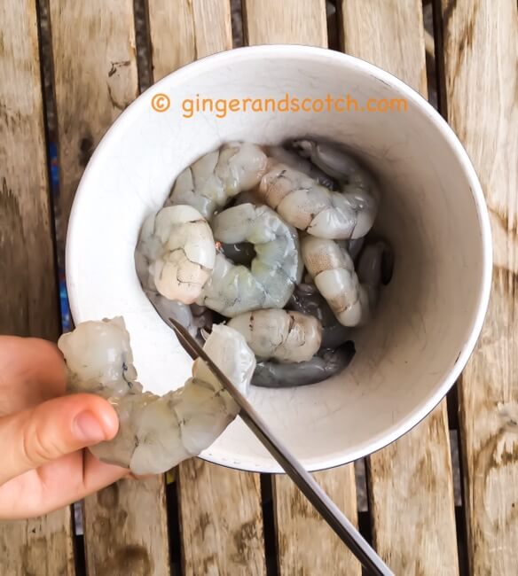 You can also slice the shrimp with a knife but I find that the kitchen shears are easier for me:
