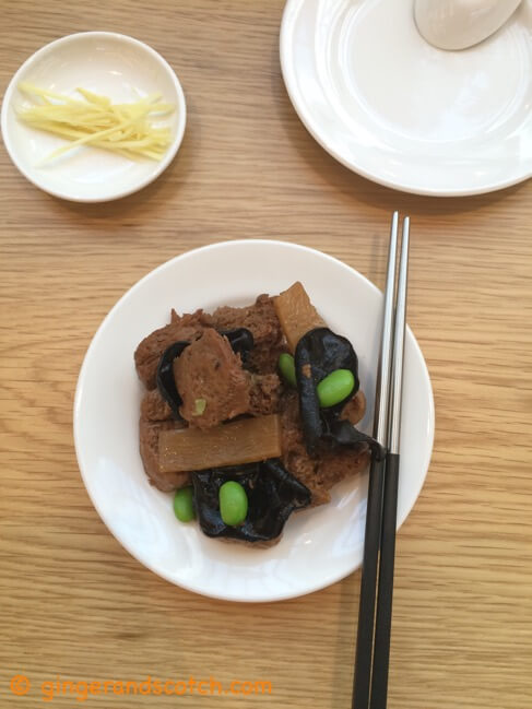 Braised Beef Soup: I loved the flavor of the broth but thought that the meat needed to be braised for another hour or more.