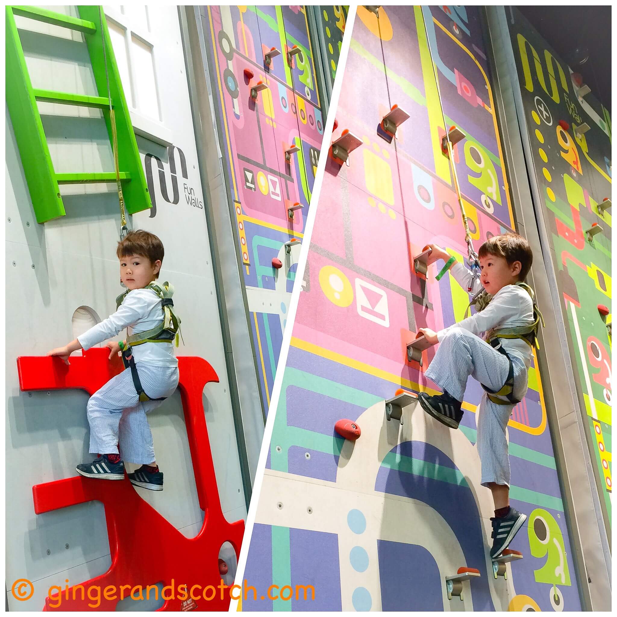 A better place to take young ones for climbing is the Fun Wall and Low-Ropes Course at the Adventure HQ in Galleria Mall which has lots of different climbing stations with kid-oriented backdrops like fire truck, cogs, dinosaur skeleton, a quiz wall, and so on.