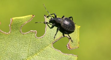 There are two common pests that like to chomp on leaves. (1) The vine weevil (my kids call them evil weevils) and (2) caterpillars. They leave distinctive eating patterns on the leaves that will help you identify them. Weevils leave irregular patterns along the leaf edges and leave behind little black spots on the leaves like dried liquid. Caterpillars tend to leave more rounded edges (you can google “caterpillar damage” for more images) and leave behind little green-black balls (can also be square) of poop.