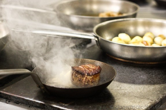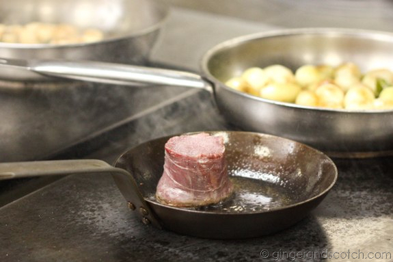 I will forever be grateful to the commis chef who miraculously appeared by my side and held down the beef fillet for me (using a spoon) so that it would brown evenly on all sides.