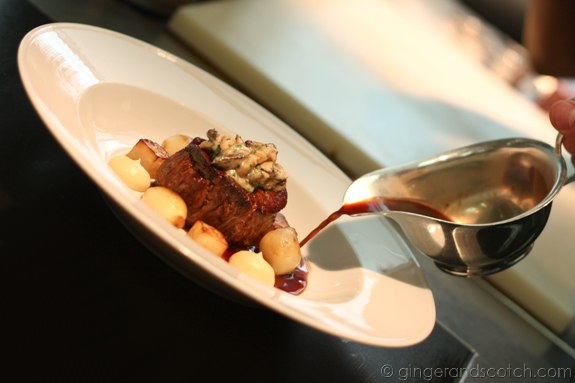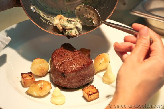 Now how can anyone not love a seared fillet bathed and basted in butter with a red wine reduction sauce? The beef was slightly overcooked (I only have myself to blame for that) but still incredibly tender and juicy and went well with the creamy wild mushrooms.