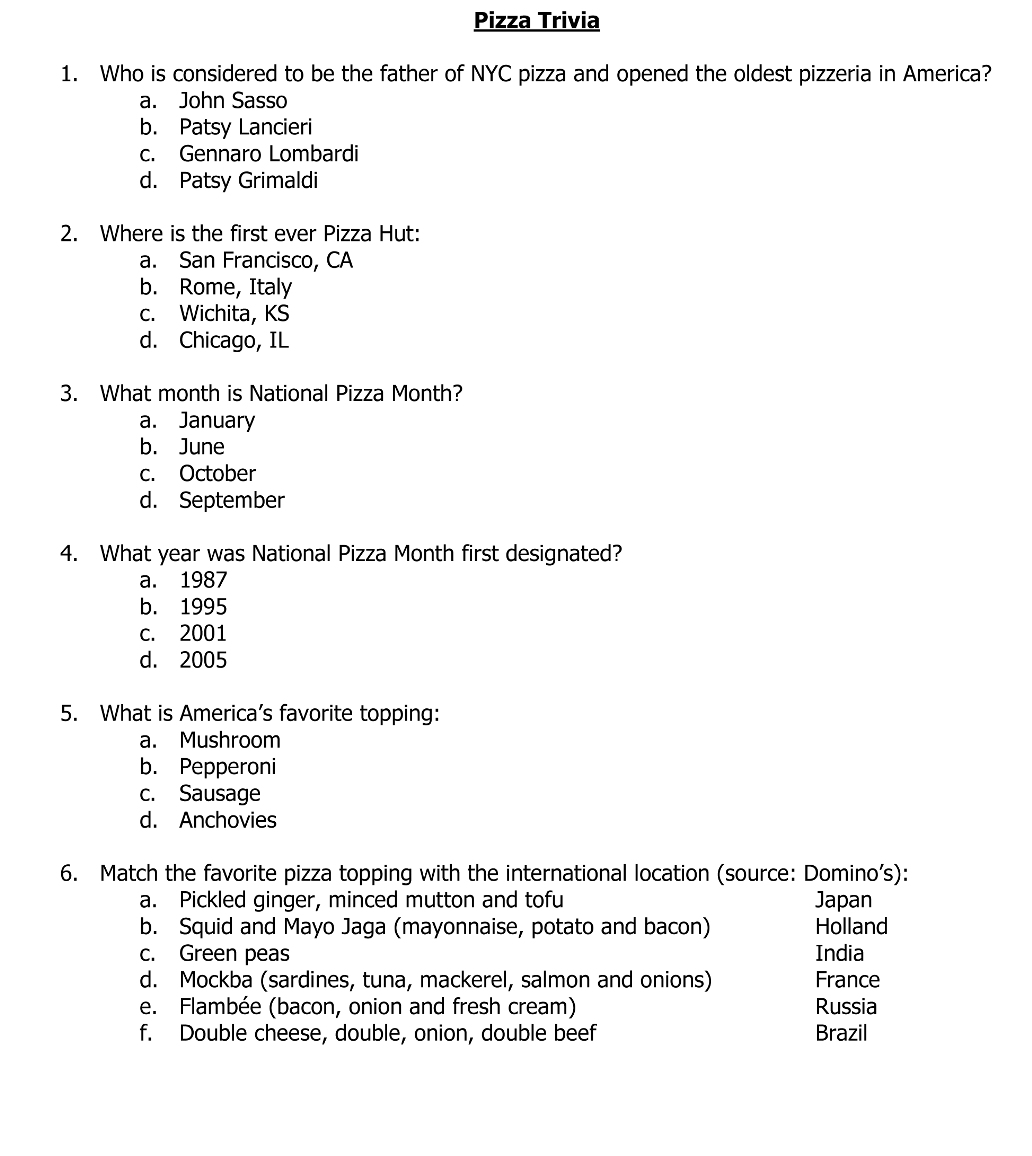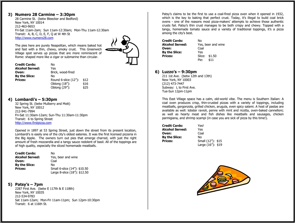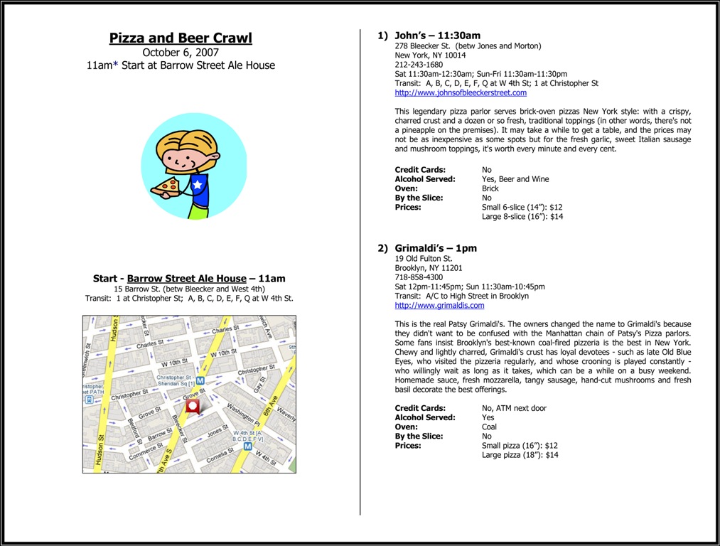 Here was our itinerary with a pizza quiz that I created for all the Pizza and Beer Crawl participants (click below for a larger image):